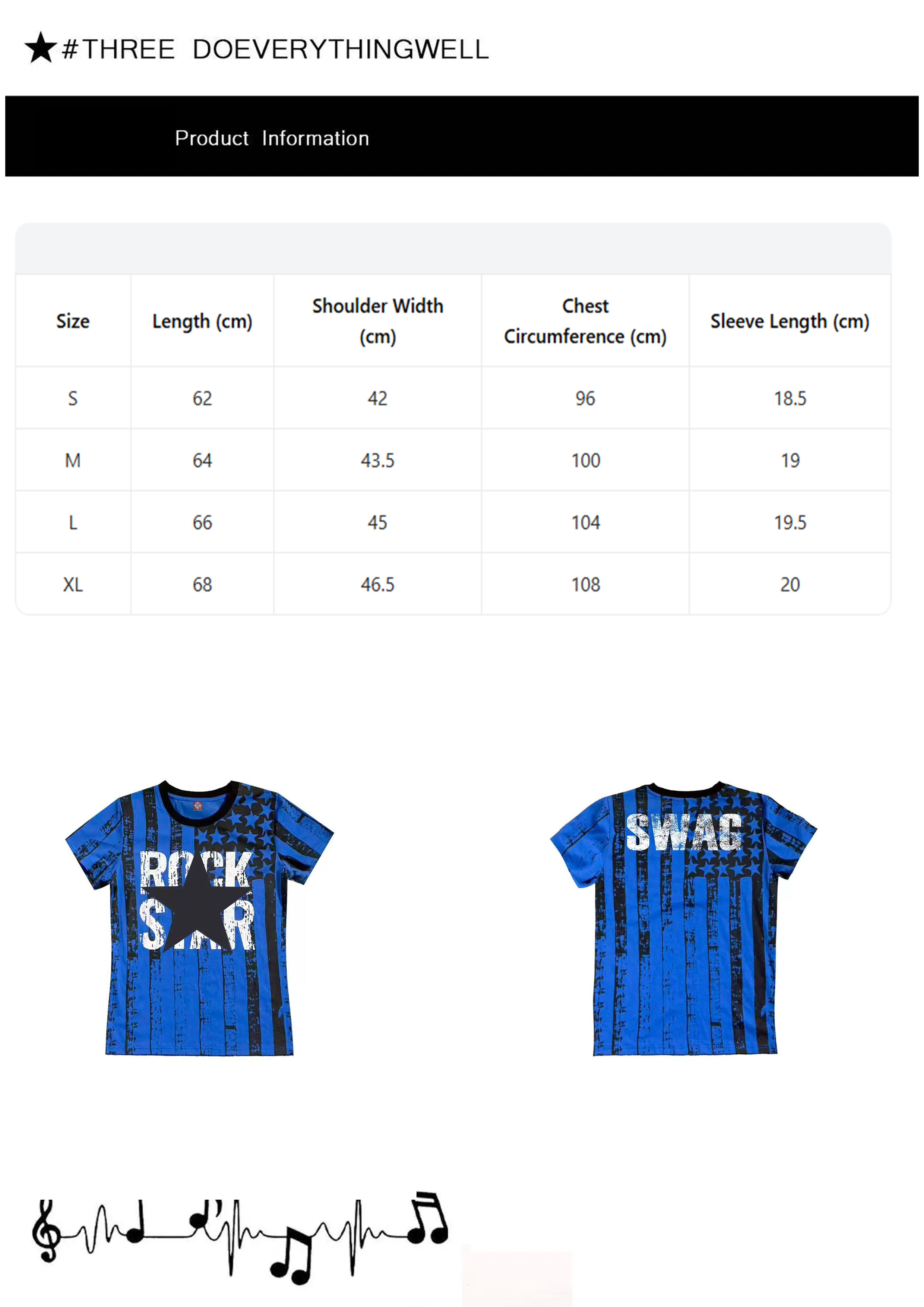 - Design Concept: The core design concept is "two-way balance of rock street attitude and vintage distressed style". The loose casual regular shoulder silhouette is comfortable and non-tight, versatile for daily wear. Blue & black color-block vertical stripes + star stripe elements, paired with double vintage distressed prints (ROCK STAR star on front, SWAG slogan on back), strengthen rock street recognition. The full-pant vintage washed craft restores retro aged texture, distinctive and eye-catching without exaggeration. The gender-neutral cut adapts to diverse style expression for both men and women, highly fitting the current popular trend of American retro, rock street SWAG style.