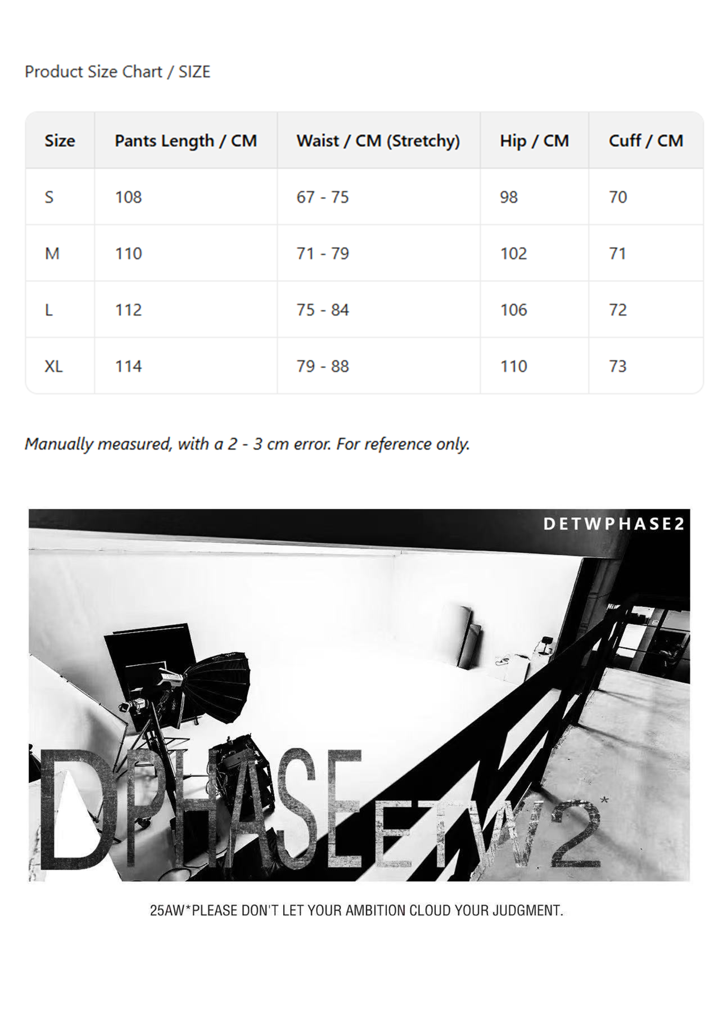 SIZE(Double-check your clothing data to prevent size non-conformity)