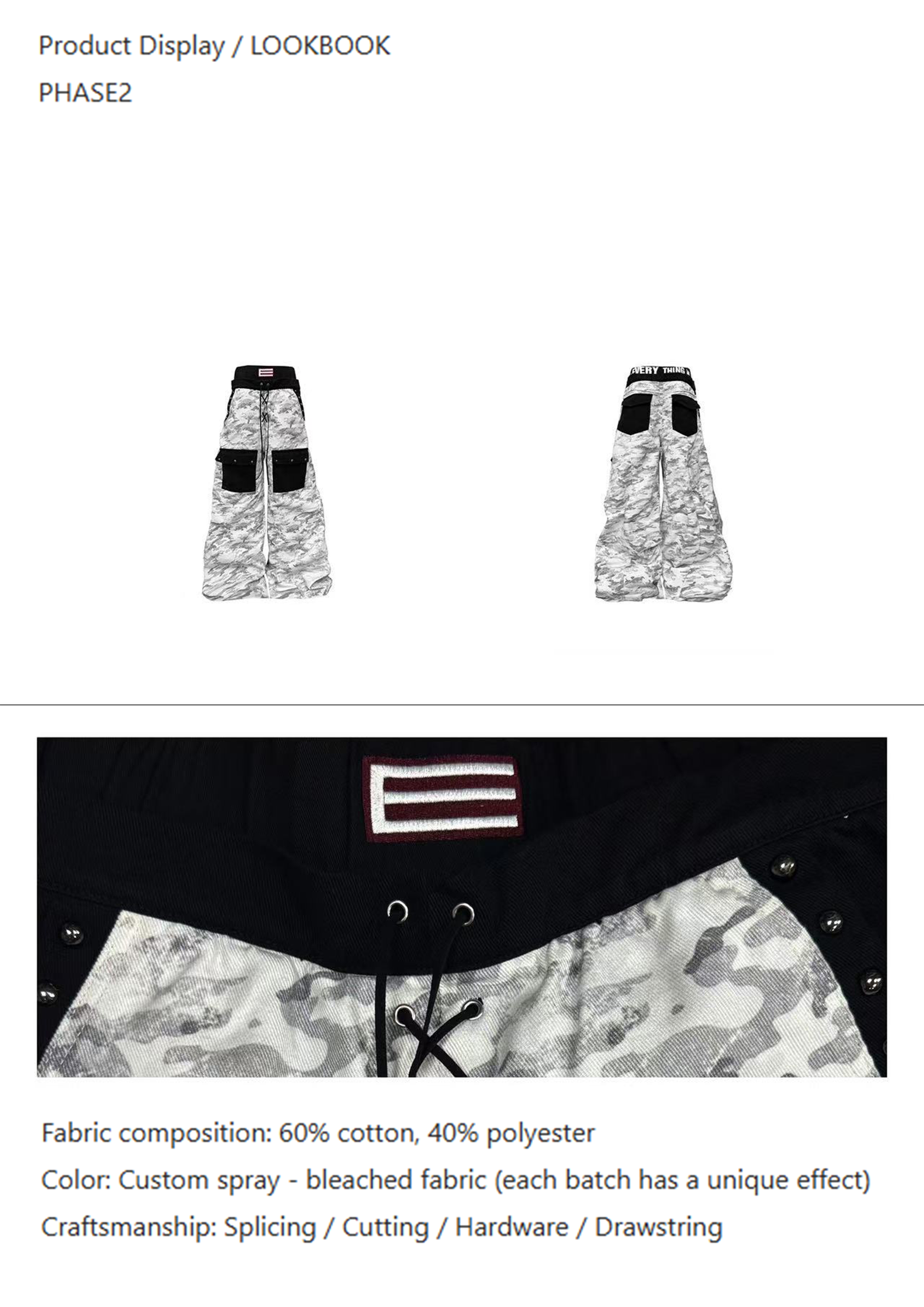 Drawing inspiration from avant - garde street culture, the gray - white camouflage main tone creates a cold and high - end feel. Contrasting large pockets and waist details inject functional style, and the exaggerated silhouette breaks conventions, balancing retro and futuristic senses, making it a pioneering piece that showcases unique aesthetics and unruly attitude.