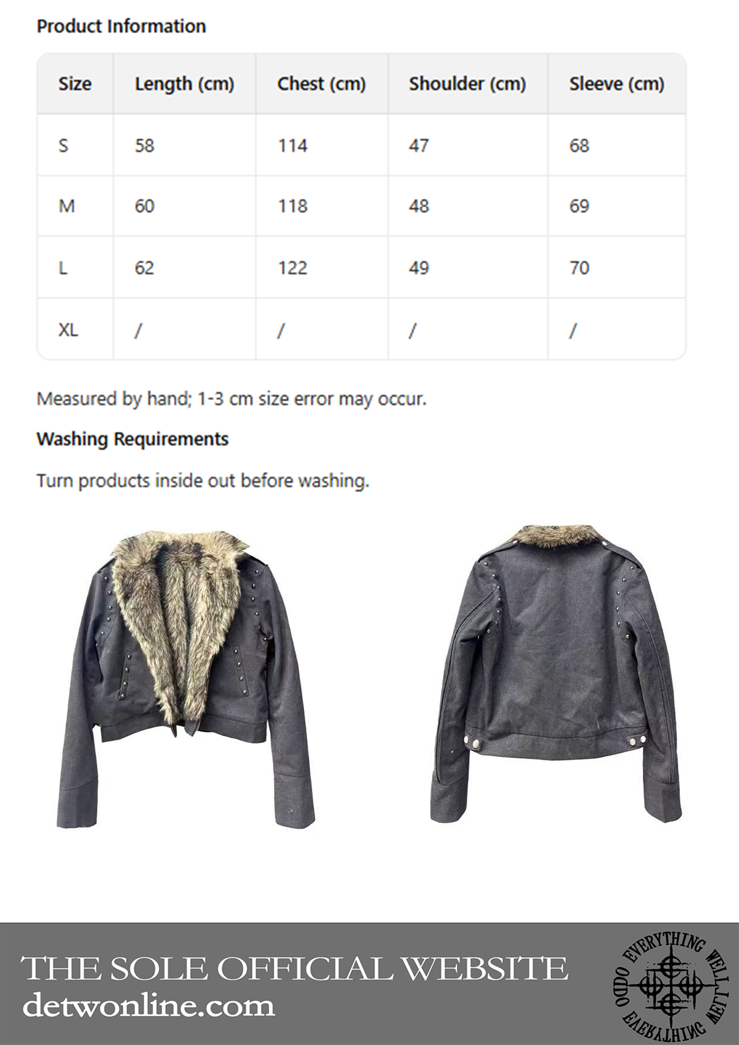 - Fit:Cropped fur-collar rivet-decorated jacket
