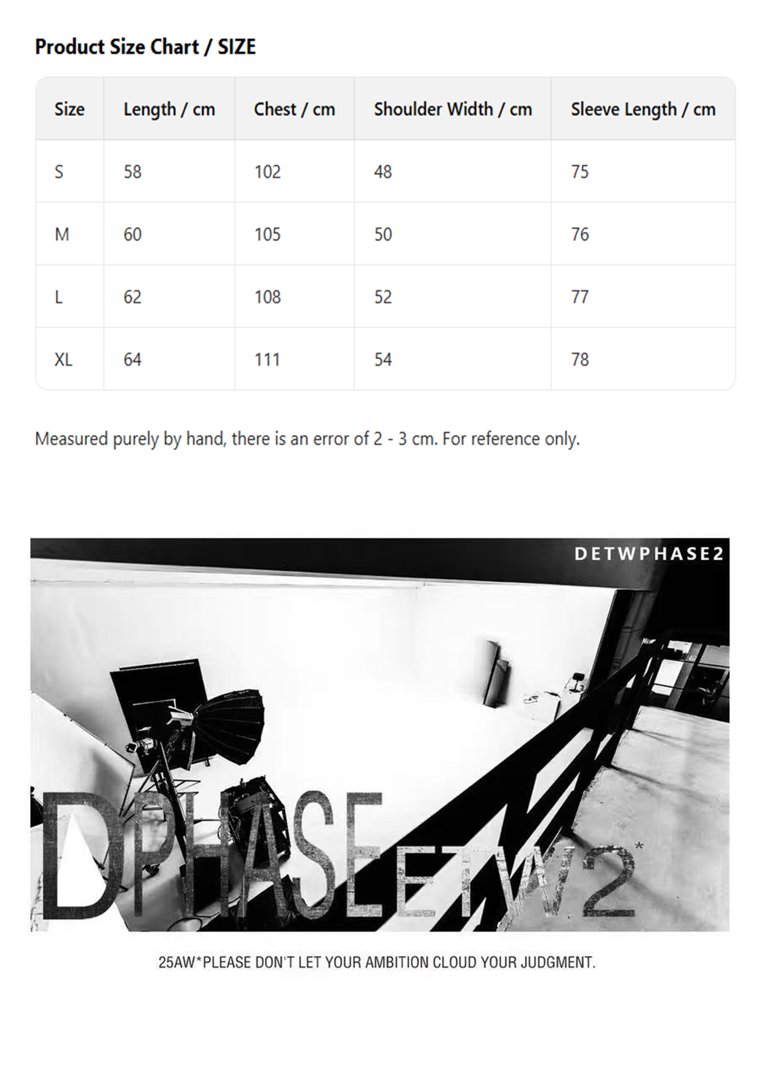 SIZE(Double-check your clothing data to prevent size non-conformity)