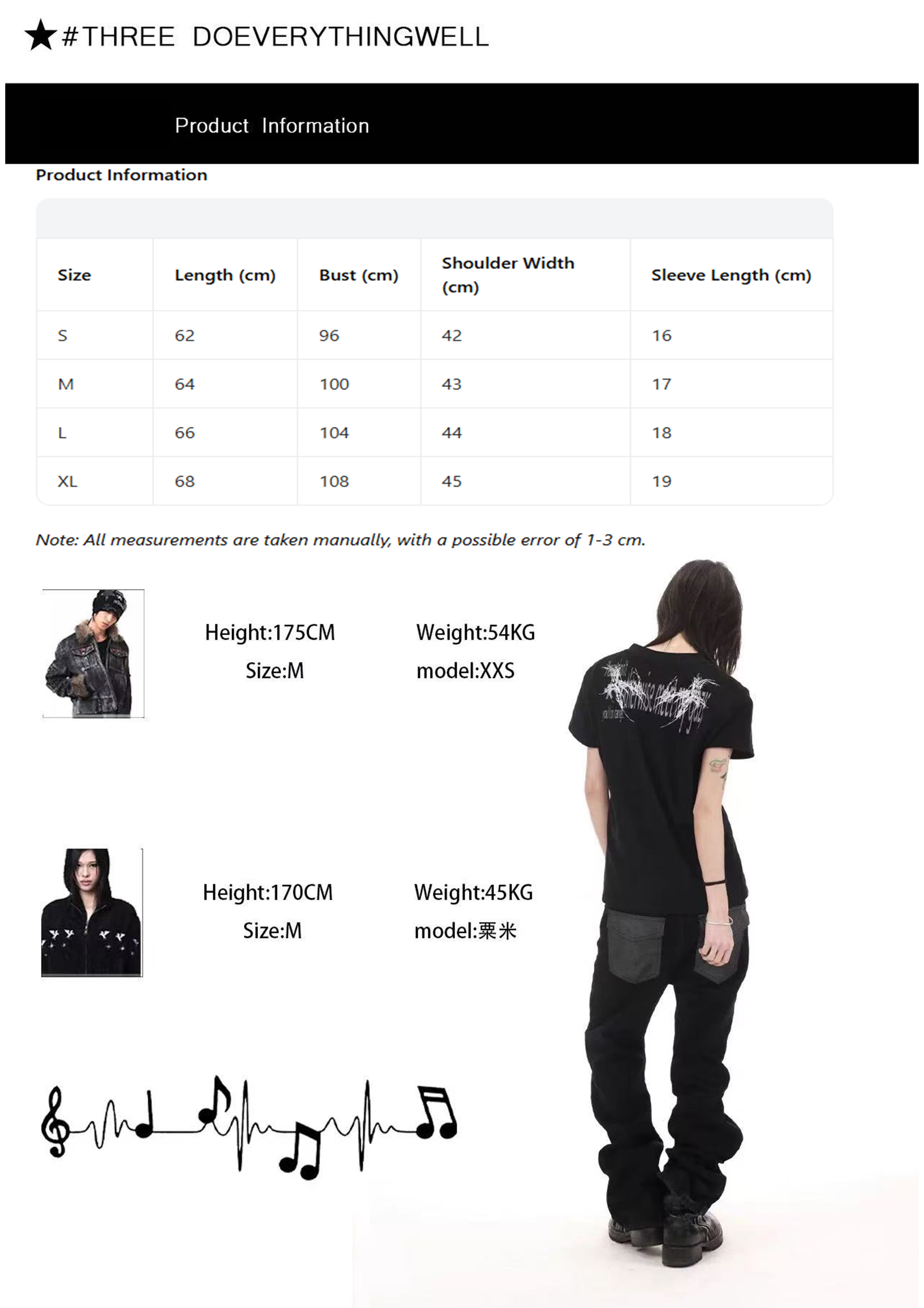 - Matching:For males: Layer a black turtleneck base top underneath, wear this thorn tee, pair it with matching stacked bootcut jeans, and finish with vintage derby boots. Accessorize with a rivet belt and silver cross necklace to create a hardcore metal rock aura. For females: Wear this tee alone, pair it with black bootcut jeans and vintage Martin boots, layer a cropped fur-lined jacket on top to highlight the Y2K dark edgy-sweet style, perfect for music festivals and fashion gatherings.