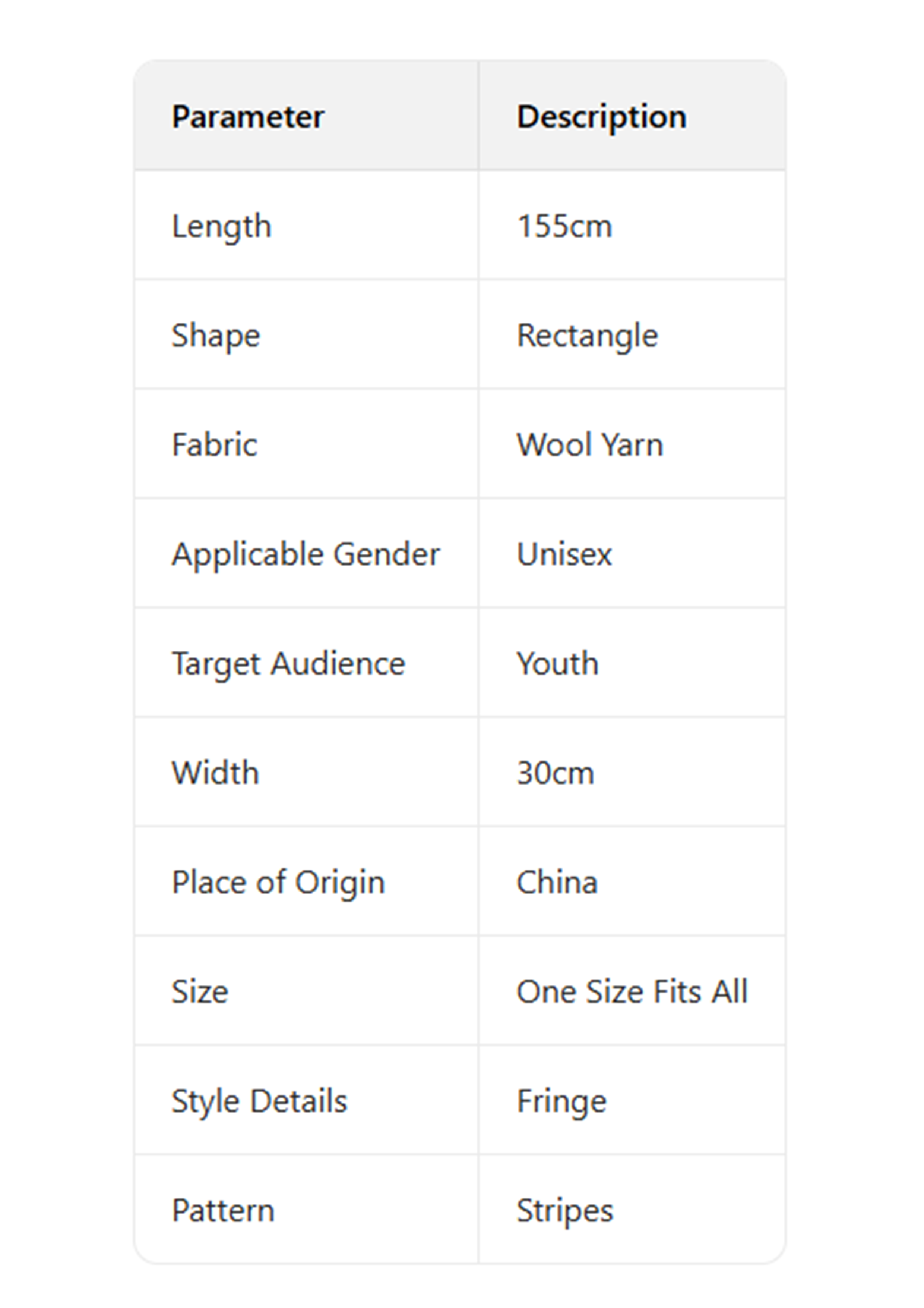 - Fit: Long fringed scarf