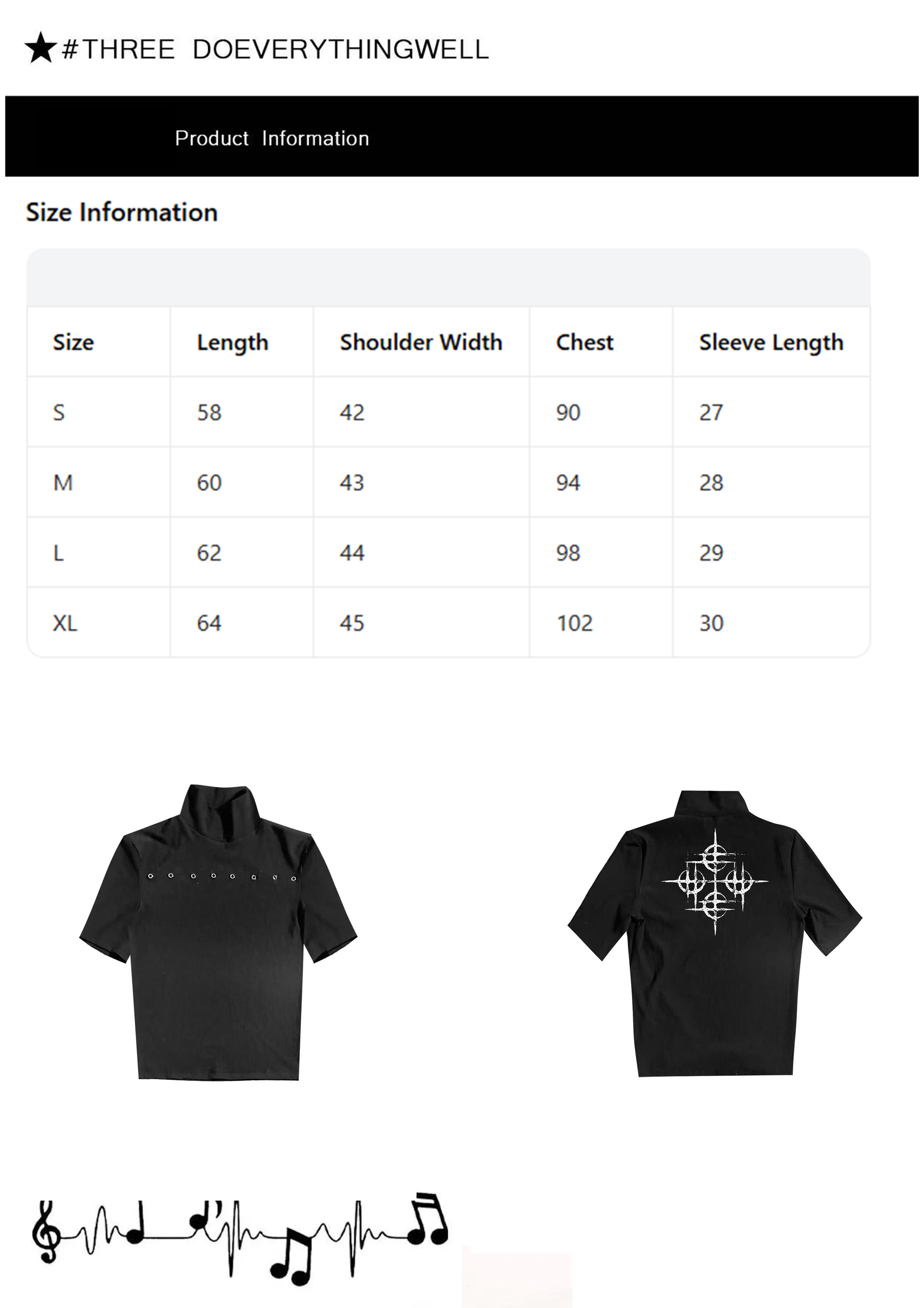- Design Concept: The core design concept is "two-way integration of ascetic minimalism and dark punk personality". The mock neck silhouette optimizes neck lines, and the close-fitting ribbed elastic fabric is comfortable and slim-fitting. The hollow metal eyelet rivet details on the chest break the monotony of solid color and inject punk rebellious vibe. The vintage distressed mysterious totem print on the back strengthens dark recognition. The gender-neutral slim cut adapts to diverse style expression for both men and women, balancing daily practicality and styling personality, highly fitting the current popular trend of dark functionality and minimalist streetwear.