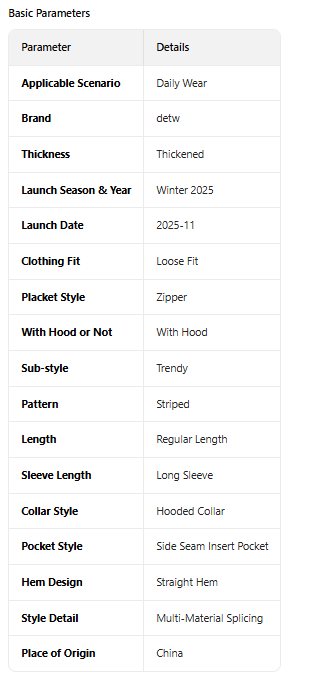 - Design Concept:Focusing on the style balance of "street slogans × autumn-winter warmth", the striped fabric ensures retro recognition, the plush collar improves warm practicality, the vertical slogan prints strengthen the street attribute, and the short fit adapts to diverse body types. It allows people of different genders to create looks that combine street fashion sense and autumn-winter comfort and warmth.