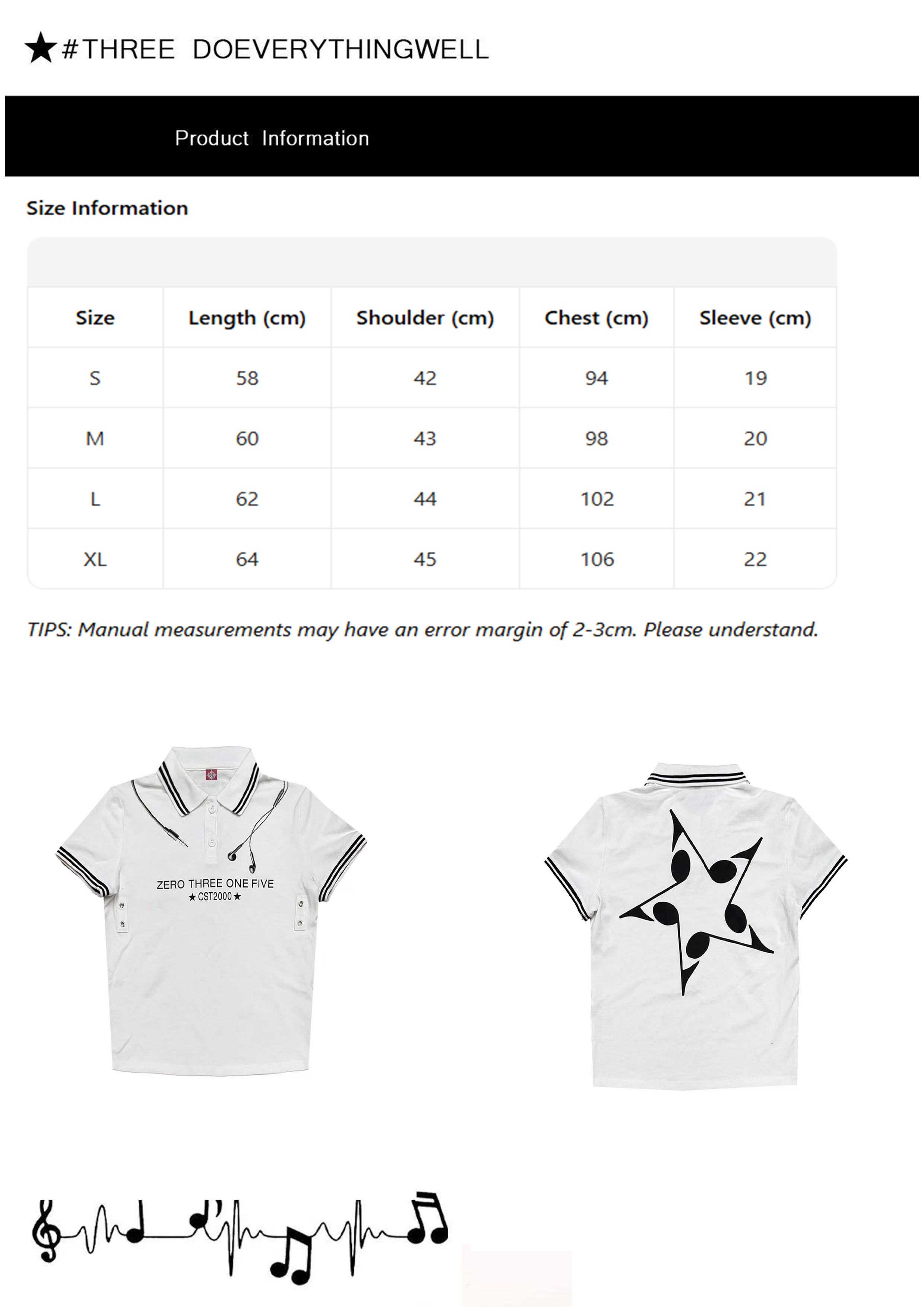 - Design Concept: The core design concept is the two-way integration of millennial music culture and preppy style. Based on the classic polo silhouette, it strengthens the music theme with elements such as earphones and music notes, the side metal snaps break the dullness of traditional polo, and the striped collar and vintage print add retro texture. It aims to create a versatile item that combines preppy style, millennial vibe and music attitude, meeting the dressing needs of young people for retro campus and Y2K subculture, realizing the collision of classic and trend.