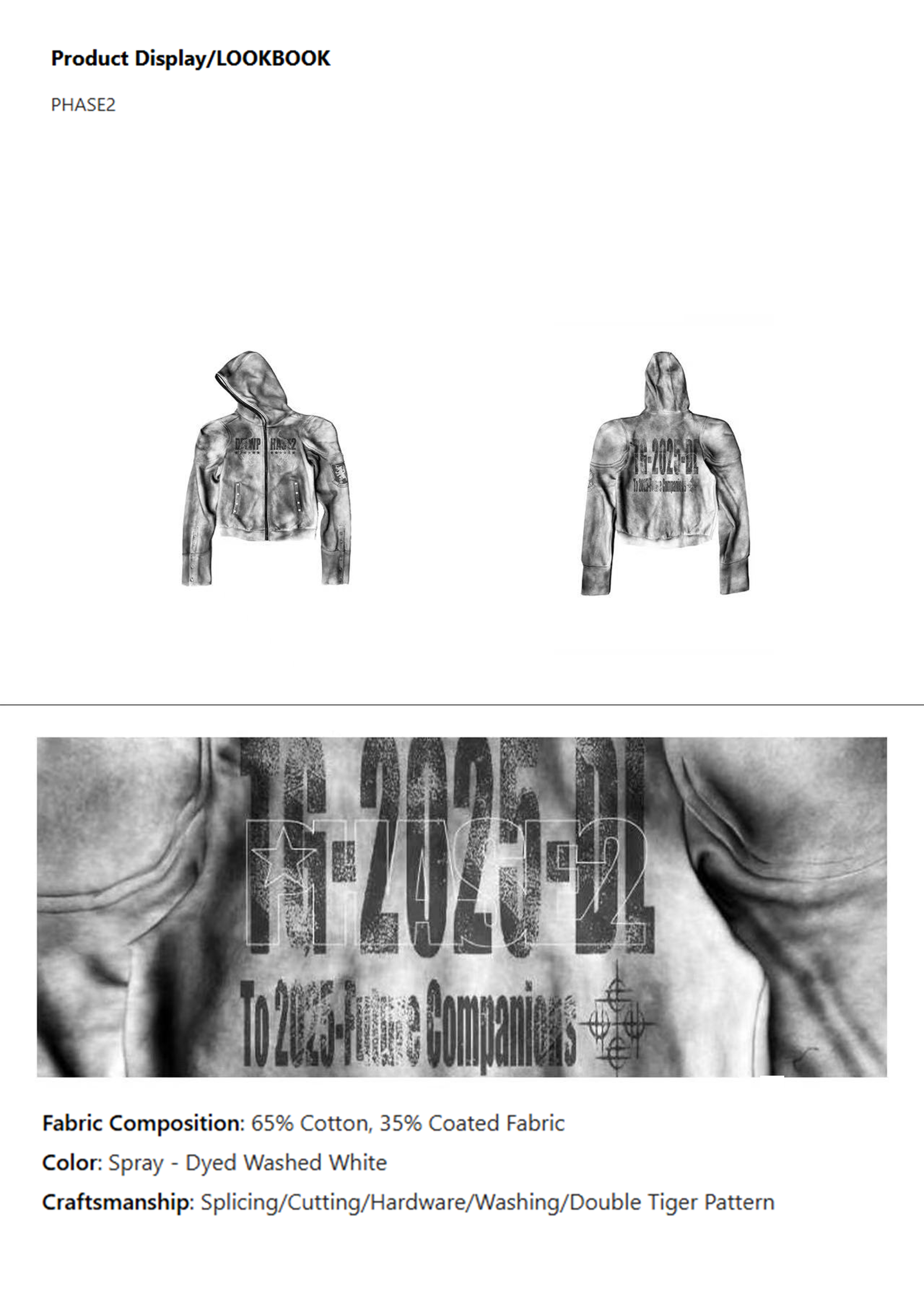 The grey washed process creates a retro - futuristic atmosphere. The front letters, emblem, and back prints like "78 - 2025 - DL" connect the reverie of the future with retro feelings. With rivet and zipper details, it creates a high - street item that combines artistry and trendiness.
