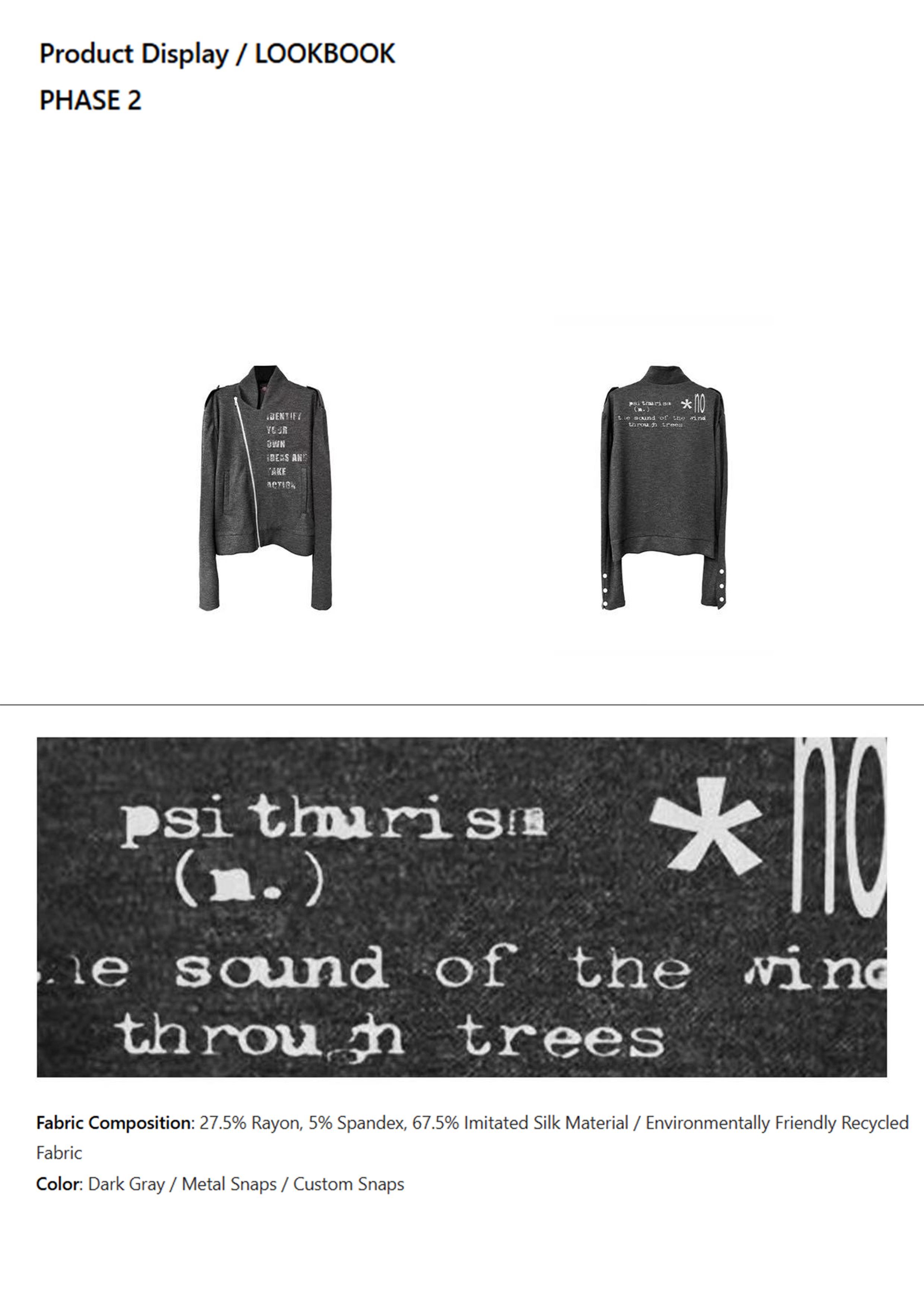 Centered on "self - awakening", it breaks the conventional jacket design with asymmetric zippers, inspirational texts and artistic prints. It integrates pioneering attitude and humanistic thinking into the version, and creates a high - end item with both style and spiritual core through neat tailoring and ingenious details.