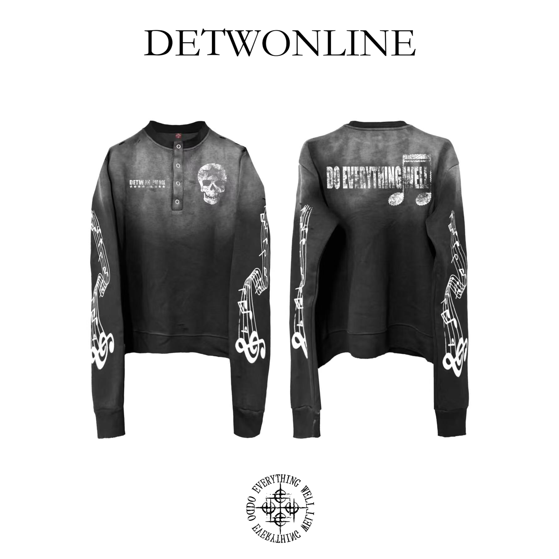 DETWONLINE Music Note Skull Snap-Button Hoodie